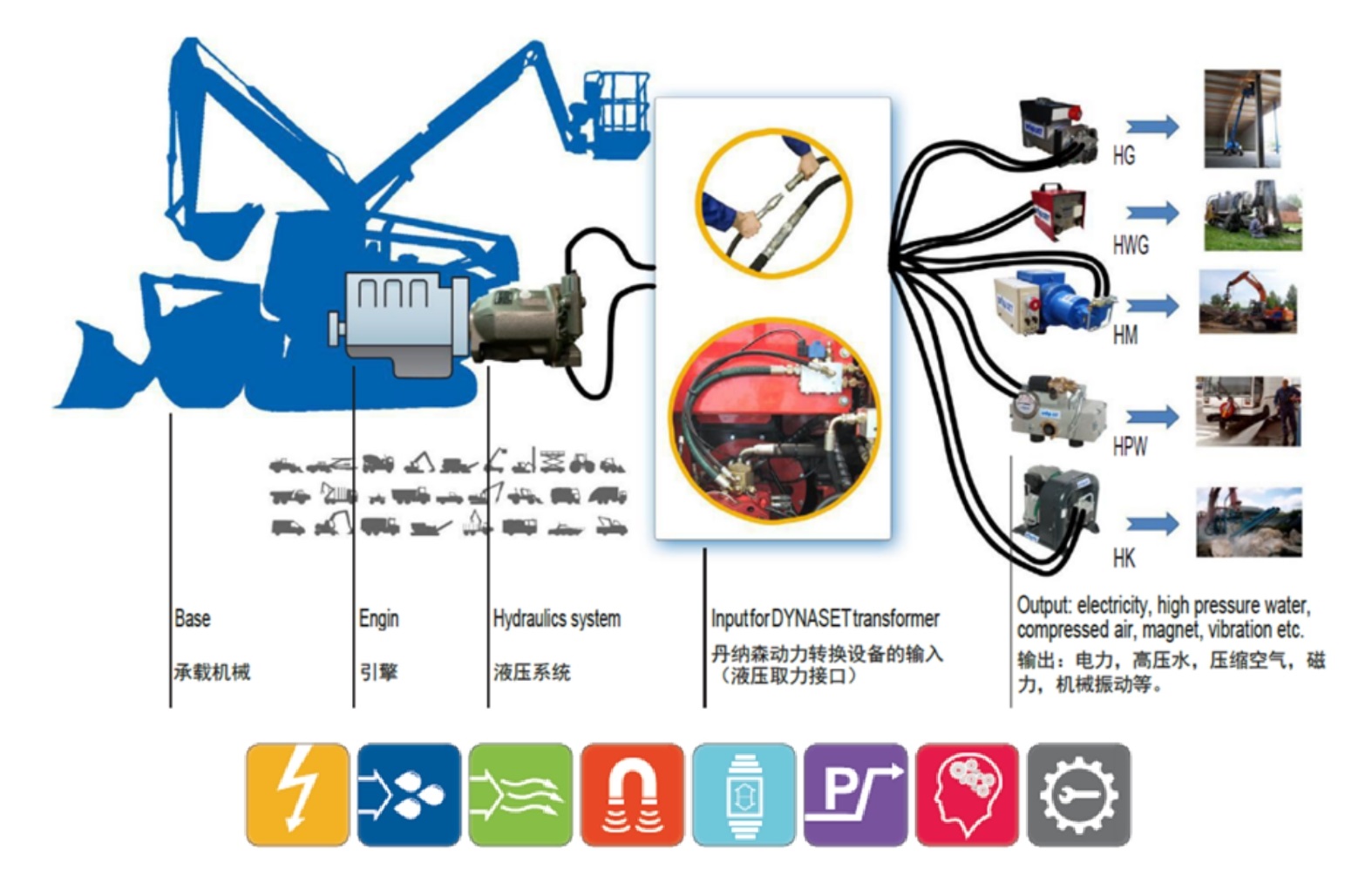 Dynaset is the global leading manufacturer of hydraulic generators, power washers and compressors. Dynaset hydraulic equipment converts a mobile machine's hydraulic power into electricity, high pressure water, compressed air, magnet and vibration. The Dynaset products are used for hundreds of applications in various industries all around the world.